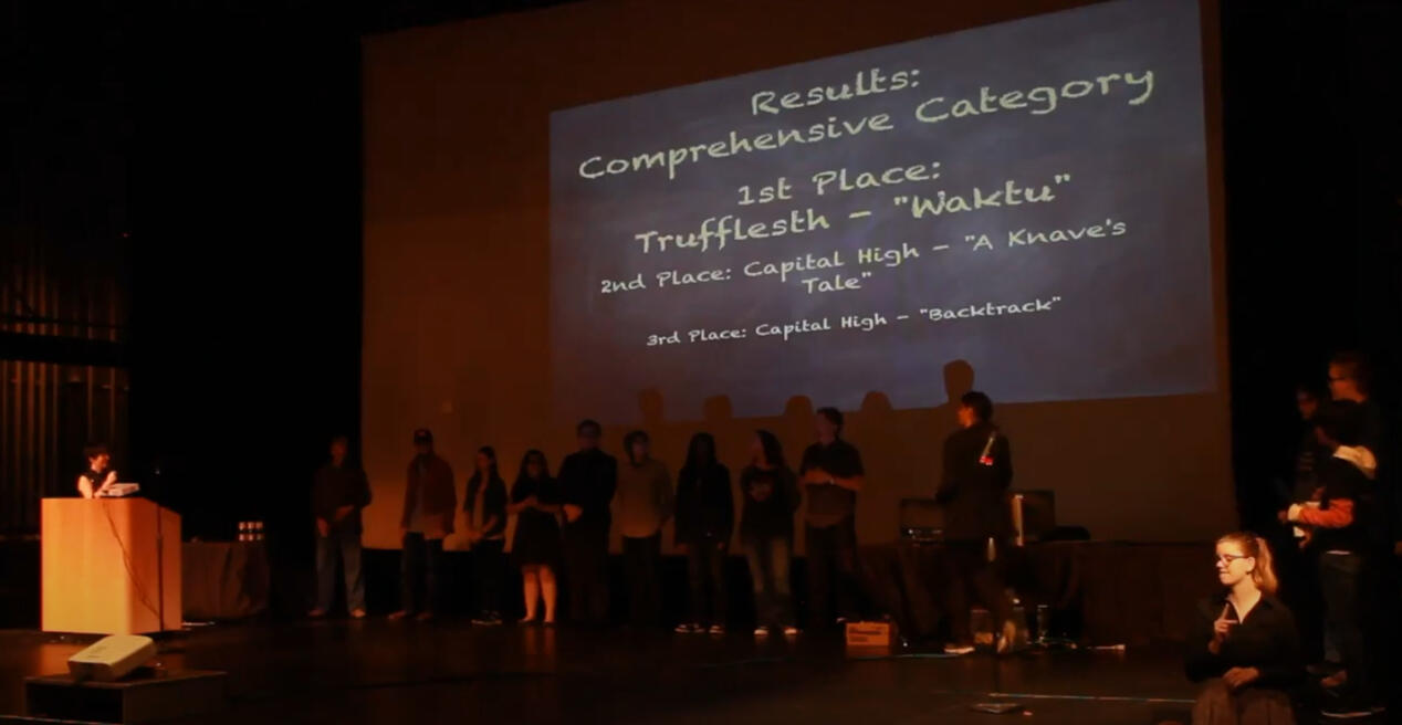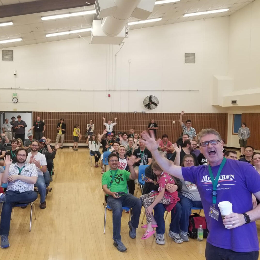 Every year, student teams across the state are given a prompt by the Advanced Media Entertainment Society (AMES) and must develop their game within the same two-month time frame.In 2016, I helped found the State Showcase. As one of the key organizers, I was essential in coordinating students, teachers, parents, and guests in order to pull off the showcase. Additional duties included marketing, soliciting sponsorships, and hosting the show itself.These days the next generation has taken over, but I frequently help with judging or last-minute hosting!